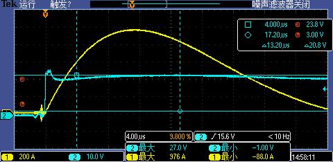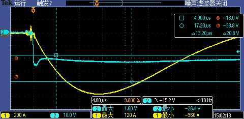 通過實(shí)際測(cè)試,以下是該器件的殘壓波形: