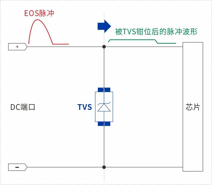 如果你的充電端口是5V供電我們建議你選擇工作電壓(VDRM)7V的BV-FE07ZA,如果你的端口是9V-20V我們建議你選擇工作電壓24V的BV-D124ZD。我們知道不是所有的充電器(或電源)都穩(wěn)定,假如5V充電口也選擇工作電壓為5V的TVS,當插入不穩(wěn)定的充電器后可能會使TVS長時間在直流下導通,因而燒壞。 我們在服務(wù)客戶的過程中,常常有這樣的提問:在充電端口TVS到底該選單向還是雙向? 我們試著把這個問題解答清楚。首先,要理解什么是正向EOS、負向EOS,如上圖一,正向EOS是EOS電流從電路正極流向負極,但TVS遭受反向(N到P)的EOS沖擊,負向EOS是EOS電流從電路的負極流向正極,但TVS遭受正向(P到N)的EOS沖擊。