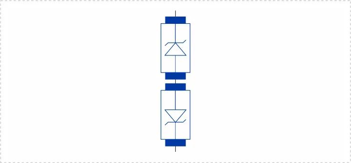 上面兩顆BV-FE05ZA的P極串聯(lián)在一起就組成了一顆雙向的TVS,如下圖四,TVS無論遭受正向還是負向的EOS沖擊,電流總會流經(jīng)一個N到P的反向結(jié),因而鉗位電壓的絕對值也是在8.9V左右。