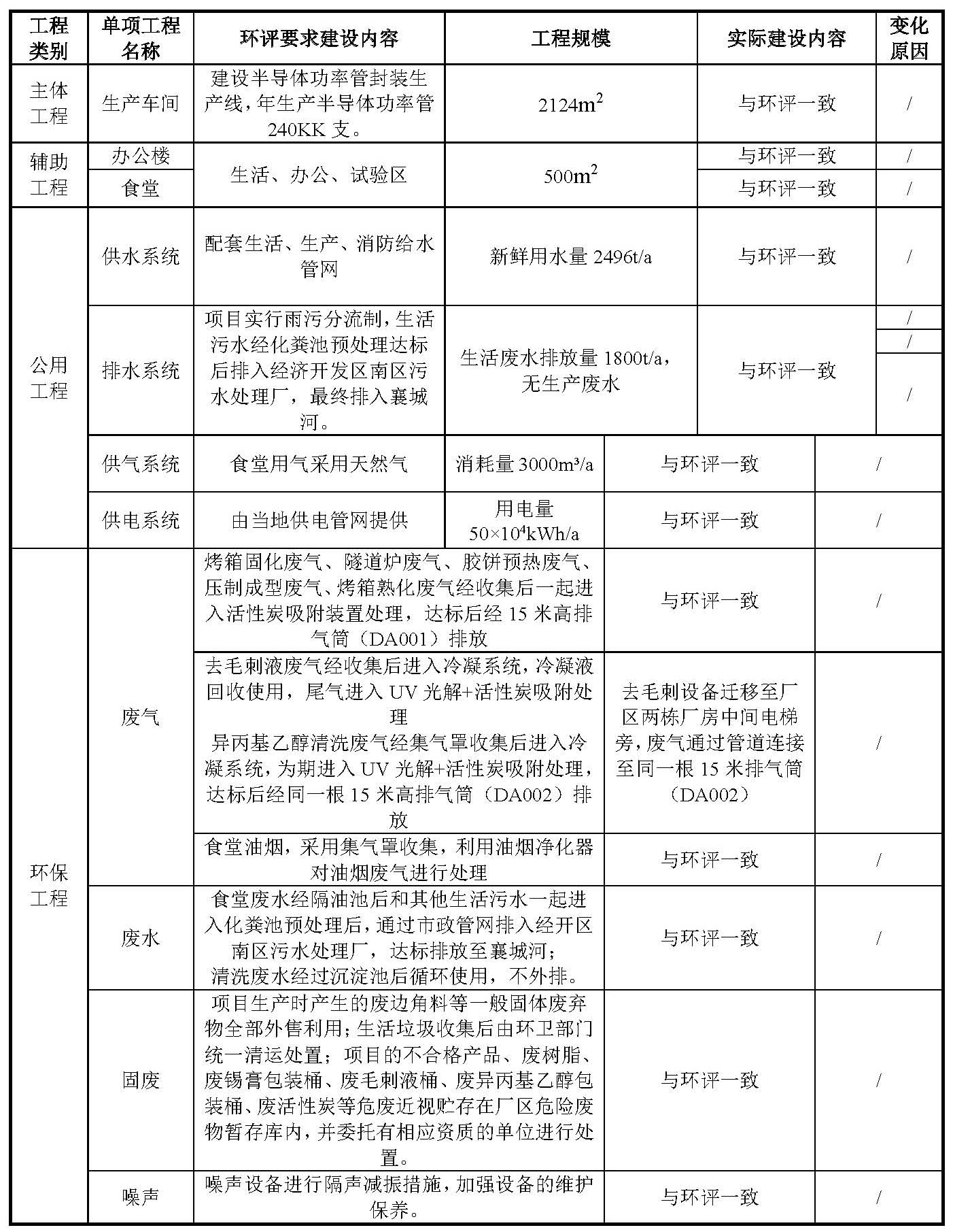 本項(xiàng)目營運(yùn)期封裝生產(chǎn)半導(dǎo)體功率管過程中,其烤箱固化廢氣、隧道爐廢氣、膠餅預(yù)熱廢氣、壓制成型廢氣、烤箱熟化廢氣,主要污染物為VOCs。廠區(qū)內(nèi)設(shè)置了一套活性炭吸附裝置進(jìn)行處理,處理后經(jīng)15米高排氣筒(DA001)達(dá)標(biāo)排放。去毛刺液廢氣、異丙基乙醇清洗廢氣主要污染物為VOCs,各自采用冷凝+UV光解+活性炭吸附裝置處理后,處理后經(jīng)一根15m排氣筒(DA002)達(dá)標(biāo)排放。食堂油煙先由集氣罩收集,后利用油煙凈化器對(duì)油煙進(jìn)行處理后排放。