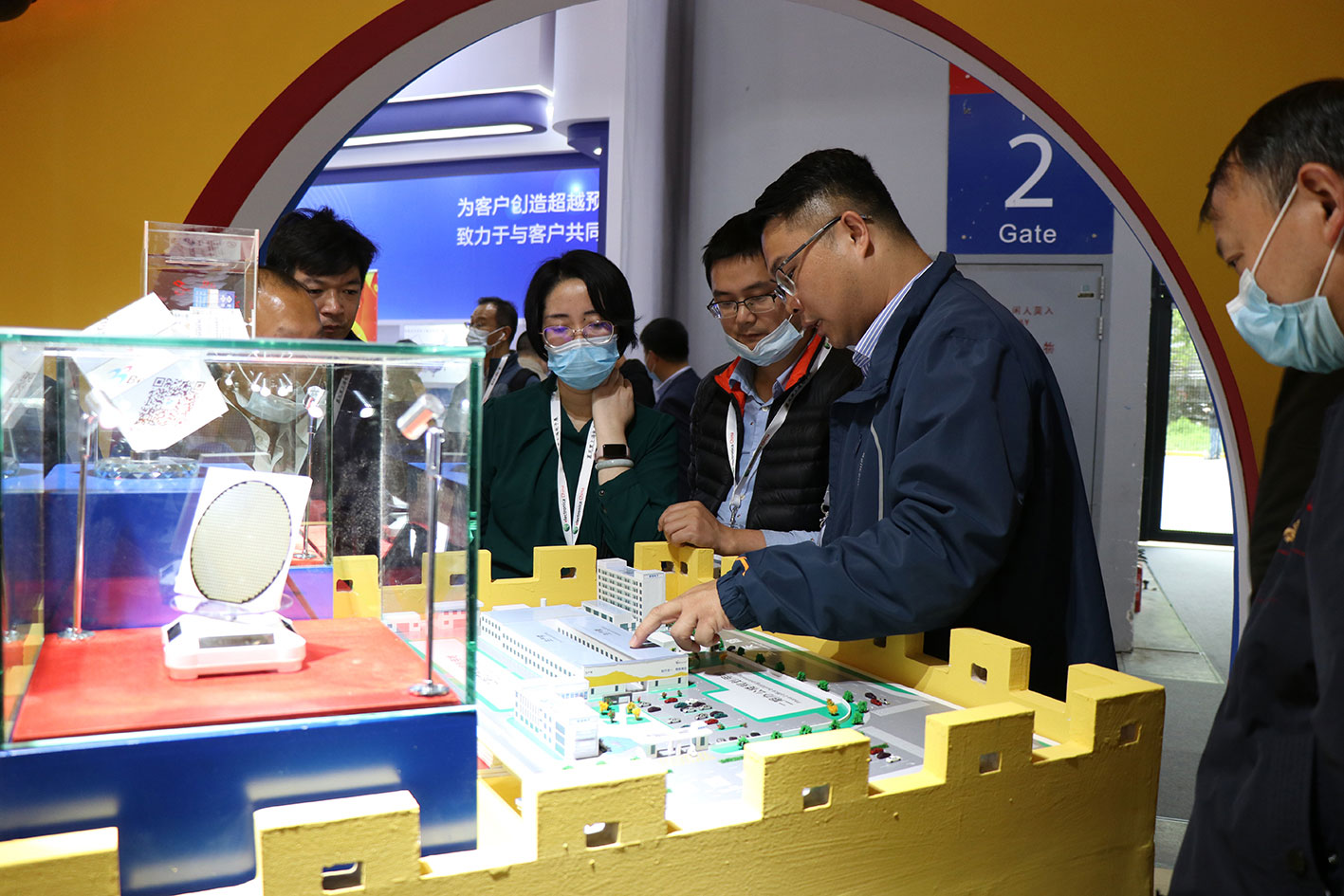 ▲技術(shù)營銷經(jīng)理為客戶介紹5G領(lǐng)域創(chuàng)新防護方案